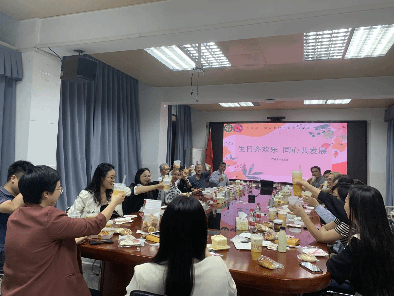 为了提高教师职业幸福感,营造互敬互爱、团结向上的和谐氛围,让老师们在忙碌的工作之余留下一份甜蜜的回忆,感受到公司这个大家庭的温暖,进一步融洽同事关系,增进相互友谊,从而达到凝聚人心,快乐工作的目的,公司分工会于2023年11月23日在实验楼302组织开展了主题为“生日齐欢乐,同心共发展”的教职工生日会。