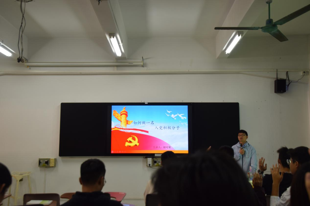 12月3日,公司分党校在莞城校区机电楼312教室举行第12期入党积极分子培训班第三讲。此次党课由公司辅导员邱可荣主讲,第12期全体入党积极分子参加。