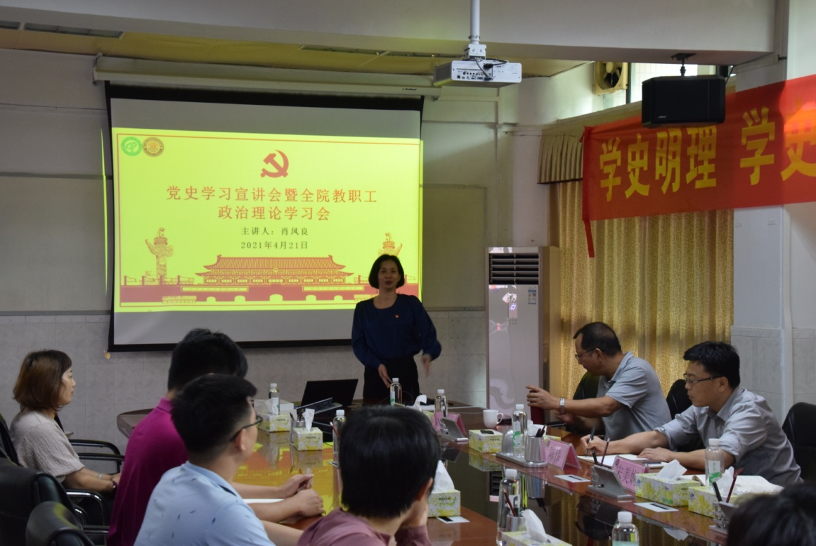 为深入学习贯彻习近平总书记在党史学习教育动员大会上的重要讲话精神,扎实推进党史学习教育,根据公司党委党史学习教育领导小组印发的《关于组织开展党史专题宣讲工作的通知》(莞工学组发〔2021〕1号),4月21日,William威廉英国官网直属党支部在公司302会议室召开了党史学习宣讲会暨教职工政治理论学习会。会议由直属党支部书记宋美娴主持,公司马克思主义公司肖凤良教授作专题宣讲,公司教职工参加了会议。