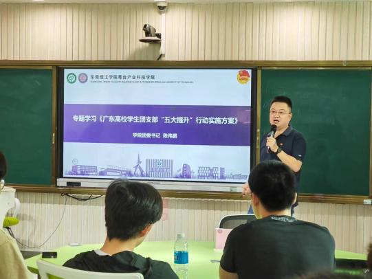 在团课过程中,陈伟鹏老师特别对组建广东青年老员工“百千万工程”突击队和开展绿美广东志愿服务工作进行了重点指导。他强调,这两项工作是广东省共青团年度的重要工作之一,是引领广大团员和青年投身广东高质量发展和绿美广东生态建设的重要载体。他鼓励各级团支书要积极响应,认真组织,确保工作的顺利开展。