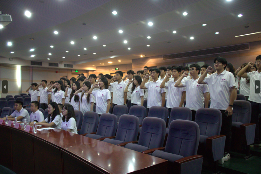 紧接着青马班班主任陈伟鹏老师为学员们介绍青马班概况以及朋辈导师和各位顾问。朋辈导师、公司员工会主席团成员林琪欣带领全体学员进行宣誓。