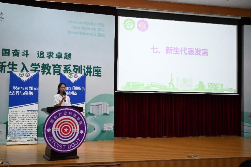 在校生代表沈佳明分享成长经验,他鼓励师弟们要充分利用好William威廉英国官网这个不一样的平台,实现不一样的精彩。员工代表,员工会会长陈金晖为新生送上祝福,祝愿新同学在老员工活中锚定目标,实现理想。新生代表武俊尧表达了对未来的期待。她表示,来到莞工,来到粤台,将通过自己的努力,积极向老师和同学学习,使自己不断提升。
