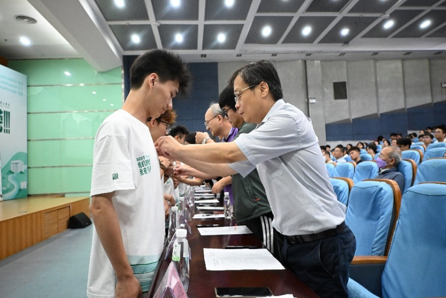 公司领导和系主任为新生佩戴院徽