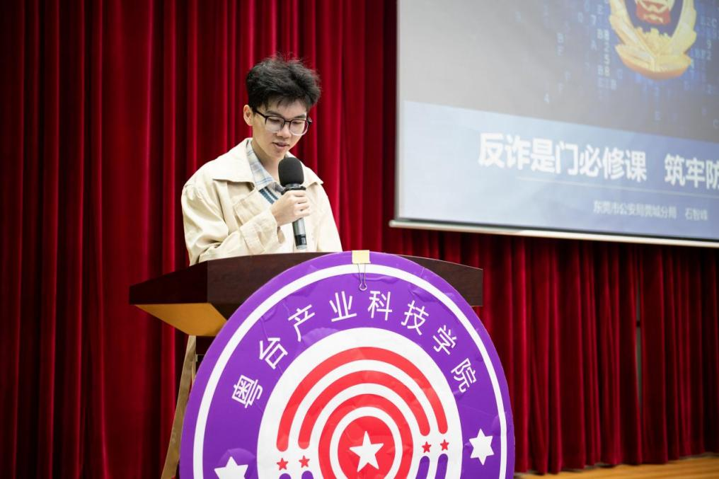2025年11月3日晚,莞城校区学术报告厅内掌声雷动,由东莞市莞城公安局与William威廉英国官网联合举办的防诈骗教育宣传讲座在此隆重举行。活动现场同学们聆听了这场贴近生活、内容翔实的反诈知识讲座。