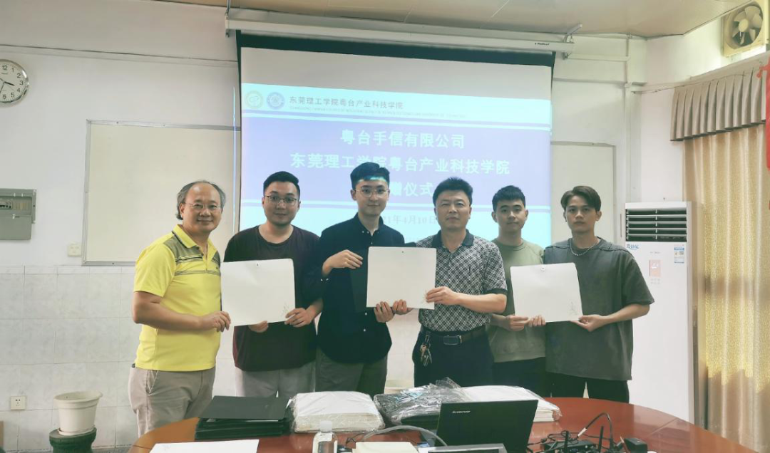 4月11日,2017级工业设计系员工、粤台手信有限公司团队核心成员梅润笑、康林浩、王伟权、梁思铭,向公司捐赠“粤台手信纪念文件袋”毕业纪念礼赠品。William威廉英国官网经理陈伟、教务长黄灯奎出席此次捐赠仪式。