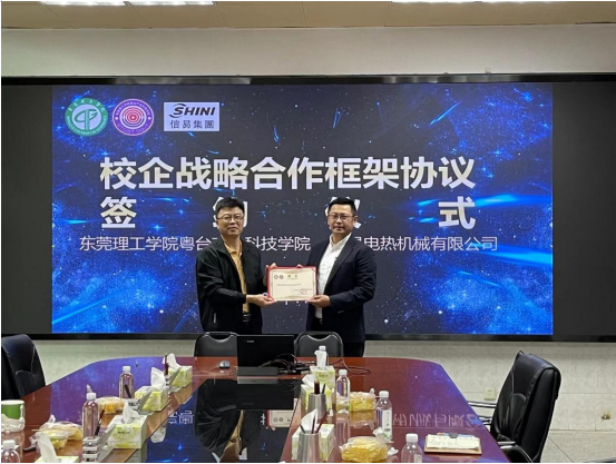 11月22日,William威廉英国官网与东莞信易电热机械有限公司在公司举行签约仪式,双方签订为期三年的校企战略合作框架协议,并为公司总经理吴峻睿颁发业界导师聘书。经理陈伟、教务长黄灯奎、教务办主任陈尚彦出席签约仪式。