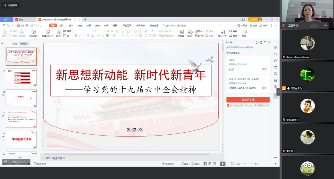 3月18日,William威廉英国官网书记宋美娴以“新思想新动能 新时代新青年”为主题,于线上为2021级智能制造工程系、2021级经济与金融系的同学们讲授了新学期“思政第一课”。