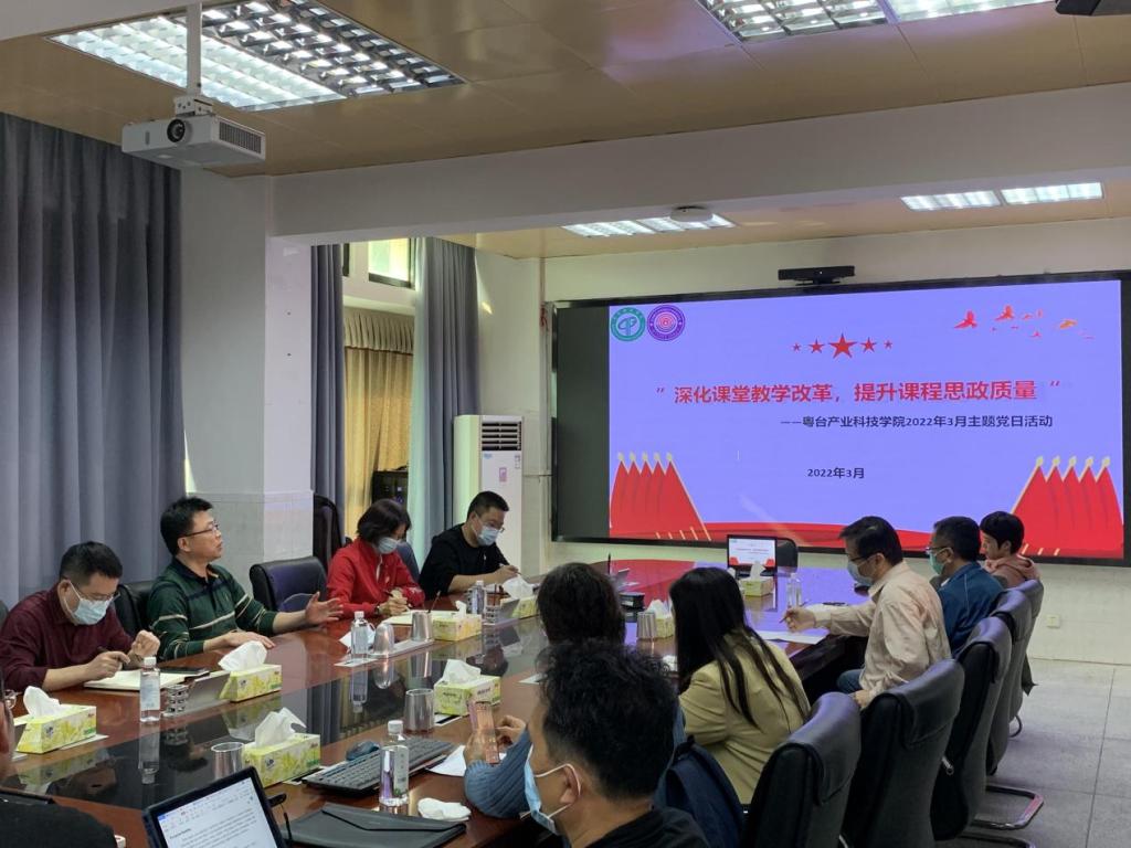 本次主题党日活动以会议专题学习的形式进行,全体教职工党员在公司302会议室参加活动,全体员工党员在线上参加活动。活动由公司书记宋美娴主持,经理陈伟传达了《东莞理工公司“深化课堂教学改革提升课程育人质量”教育教学大讨论工作方案》有关精神。同时,陈伟围绕集团“教育教学大讨论工作方案”,结合公司上个学期末召开的课程思政专项工作推进会议的工作要求,从“两岸合作办学,如何找准切入点开展好课程思政工作”进行了解读和辅导。