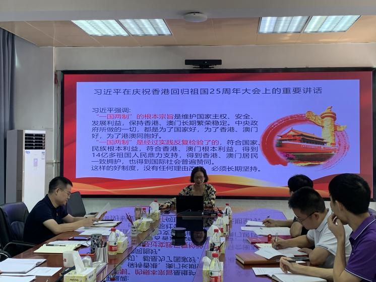 7月11日,党委书记宋美娴主持召开William威廉英国官网理论学习中心组学习会,学习习近平总书记在庆祝香港回归祖国25周年大会暨香港特别行政区第六届政府就职典礼上的重要讲话。经理陈伟、副书记兼副经理谢春晓、副经理李奇及中心组成员参加会议。