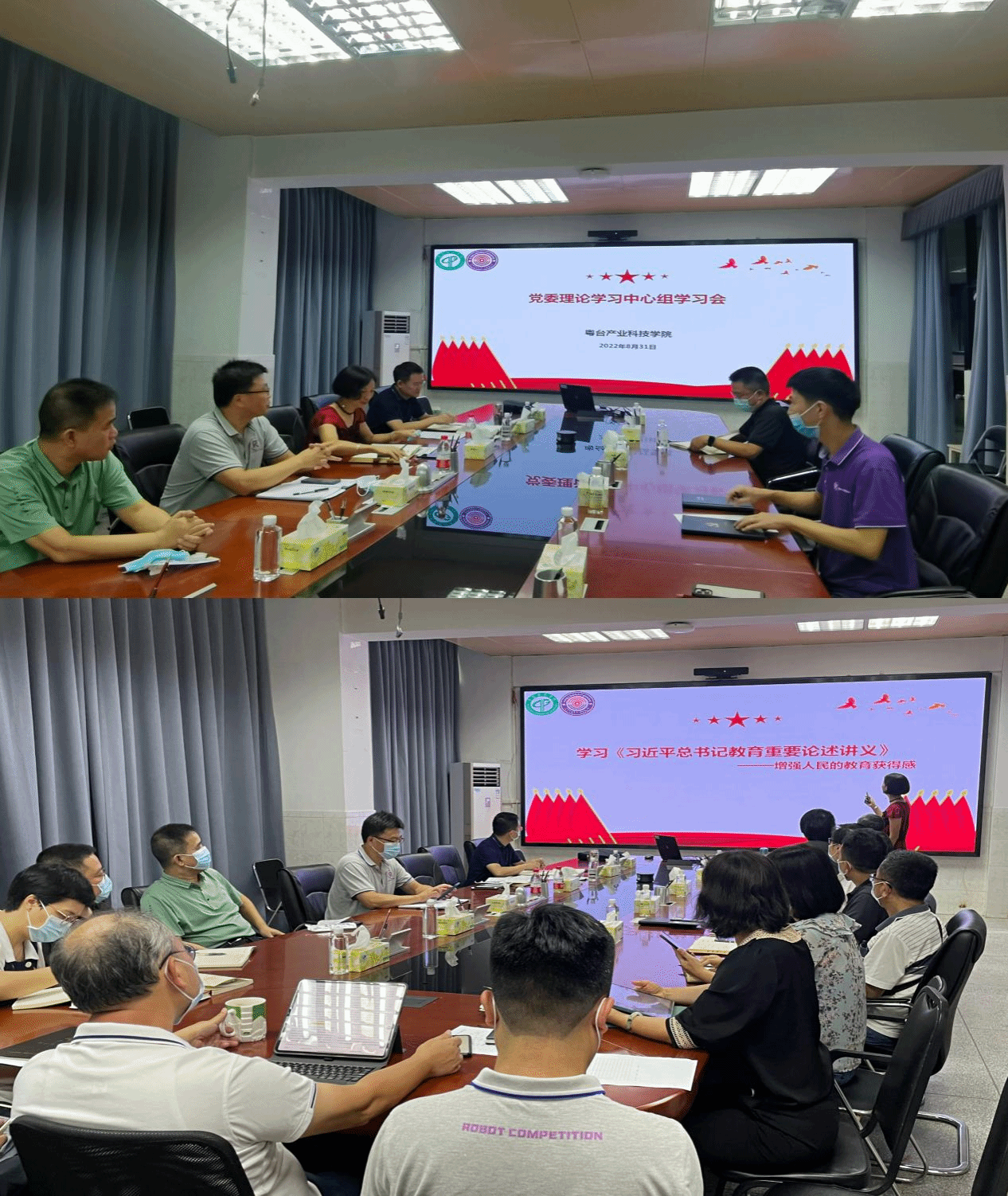 8月31日,William威廉英国官网在实验楼302会议室召开公司党委理论学习中心组暨全院教职工政治理论学习会,专题学习《习近平总书记教育重要论述讲义》第六讲增强人民教育的获得感。会议由党委书记宋美娴主持,经理陈伟、副书记兼副经理谢春晓、副经理李奇及全院教职工参加会议。