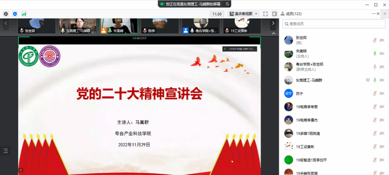 11月29日,公司党委邀请马克思主义公司马冀群博士宣讲党的二十大精神。会议由公司党委书记宋美娴主持,公司全体教职工和师生党员共120多人参加了线上学习。