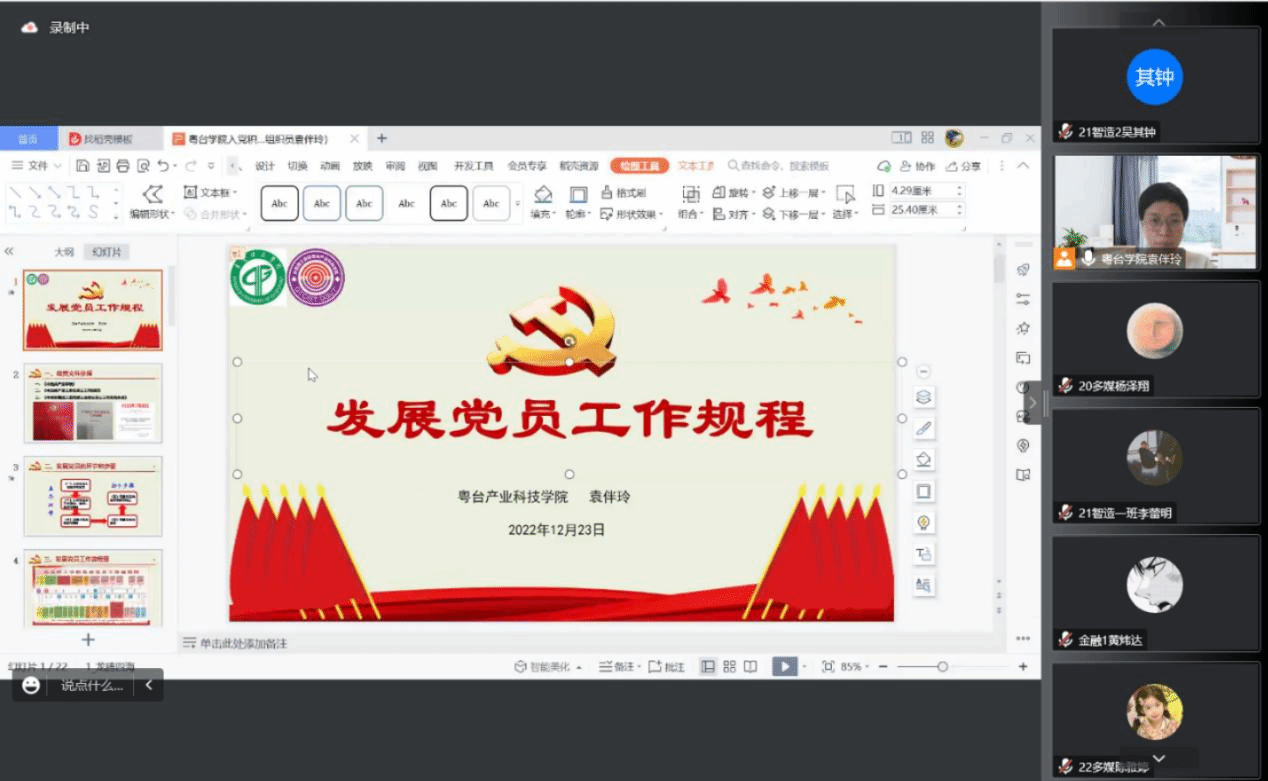 为提高公司入党积极分子的党性修养,落实党内政策,做好入党积极分子的发展工作,公司党委组织第13、14期入党积极分子于12月23日开展党课第四讲(线上)。