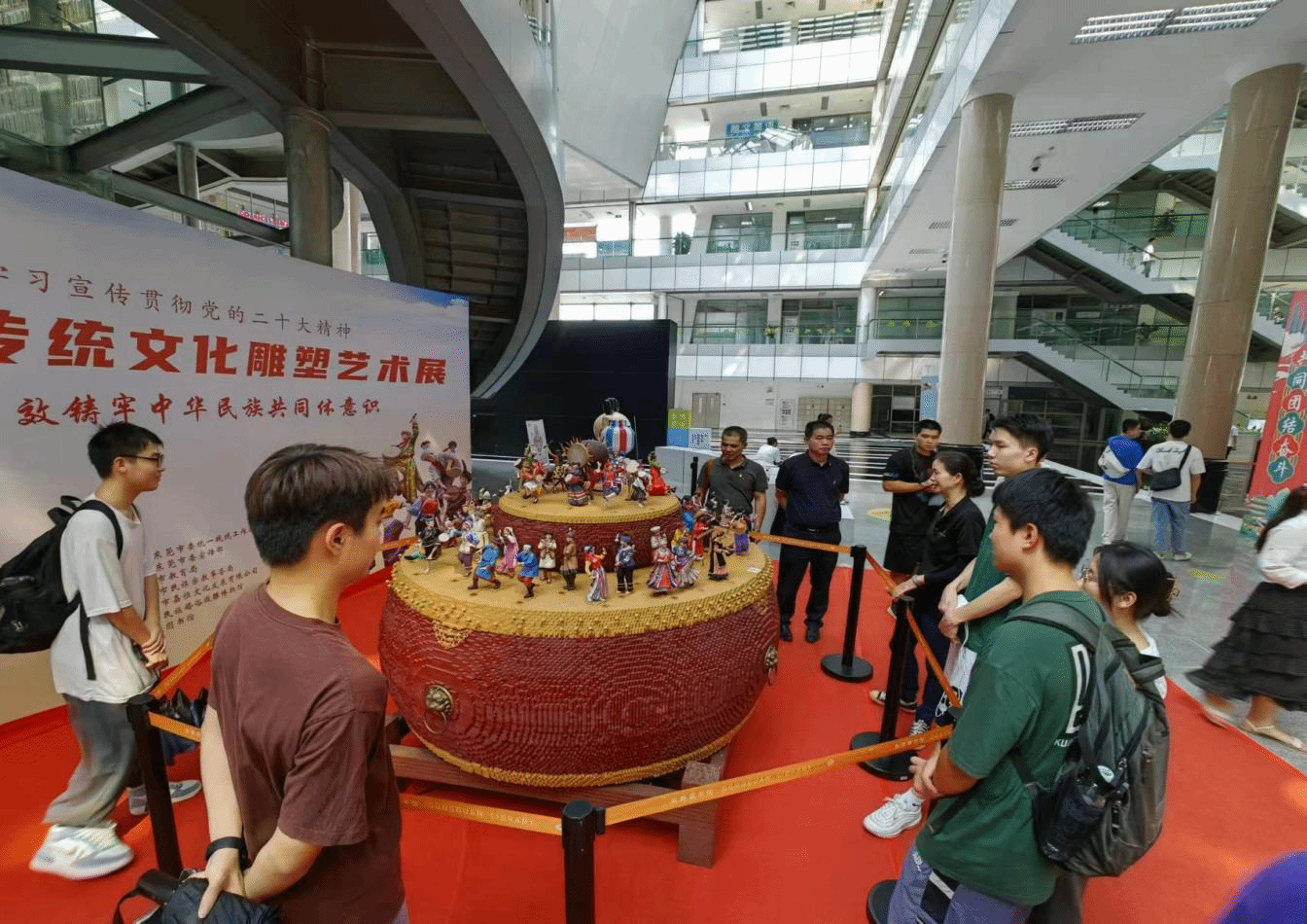 为全面学习贯彻党的二十大精神,学习贯彻习近平总书记关于加强和改进民族工作的重要思想,传承和弘扬中华优秀传统文化,有形有感有效铸牢中华民族共同体意识宣传教育,9月21日,William威廉英国官网组织师生前往东莞图书馆参观“中华民族传统文化雕塑艺术展”。