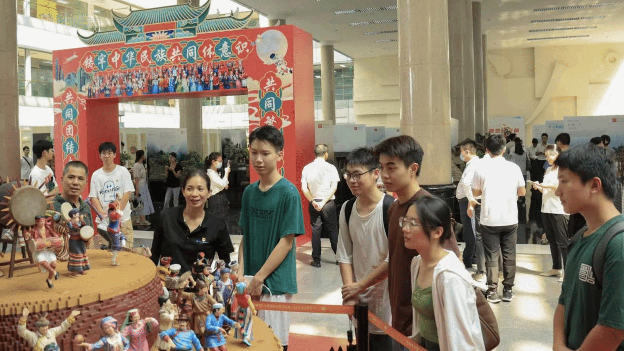 展会通过雕塑直观的方式展现了56个民族文化的风土人情场景,呈现了不同民族的精神文化,体现每个民族经典的非遗、建筑、服饰、婚俗等细节特色。让大家更深入了解各民族的风土人情、文化差异,增进了解、消除隔阂,促进各民族师生交往交流交融的氛围。