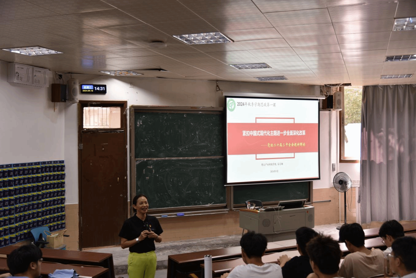 为深入学习贯彻习近平总书记在党的二十届三中全会上的重要讲话精神,使员工进一步坚定理想信念,强化使命担当,9月18日,公司党委书记宋美娴在莞城校区六号楼阶梯教室为2023级(粤台)工业设计1班、电商1-2班和计技1班共136名员工讲授了以《紧扣中国式现代化主题,进一步全面深化改革——党的二十届三中全会精神解读》为题的“思政第一课”。