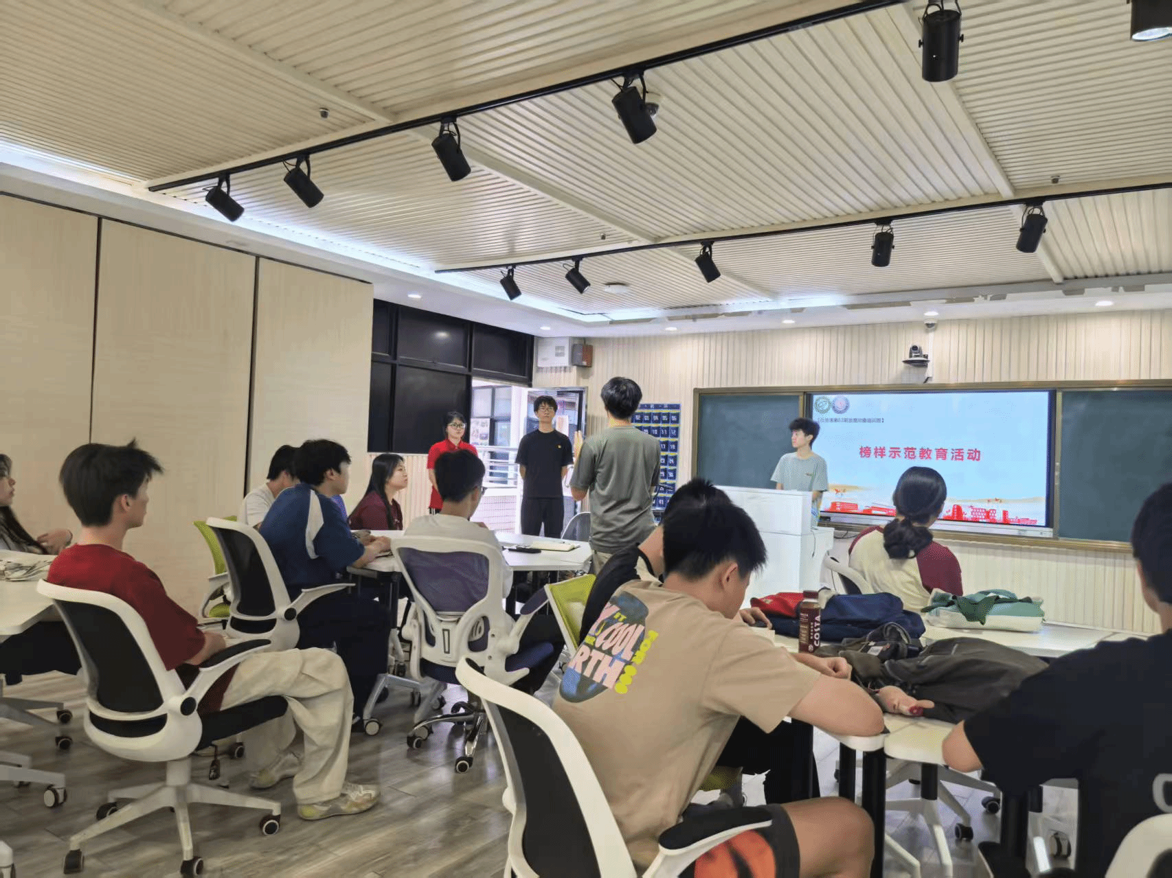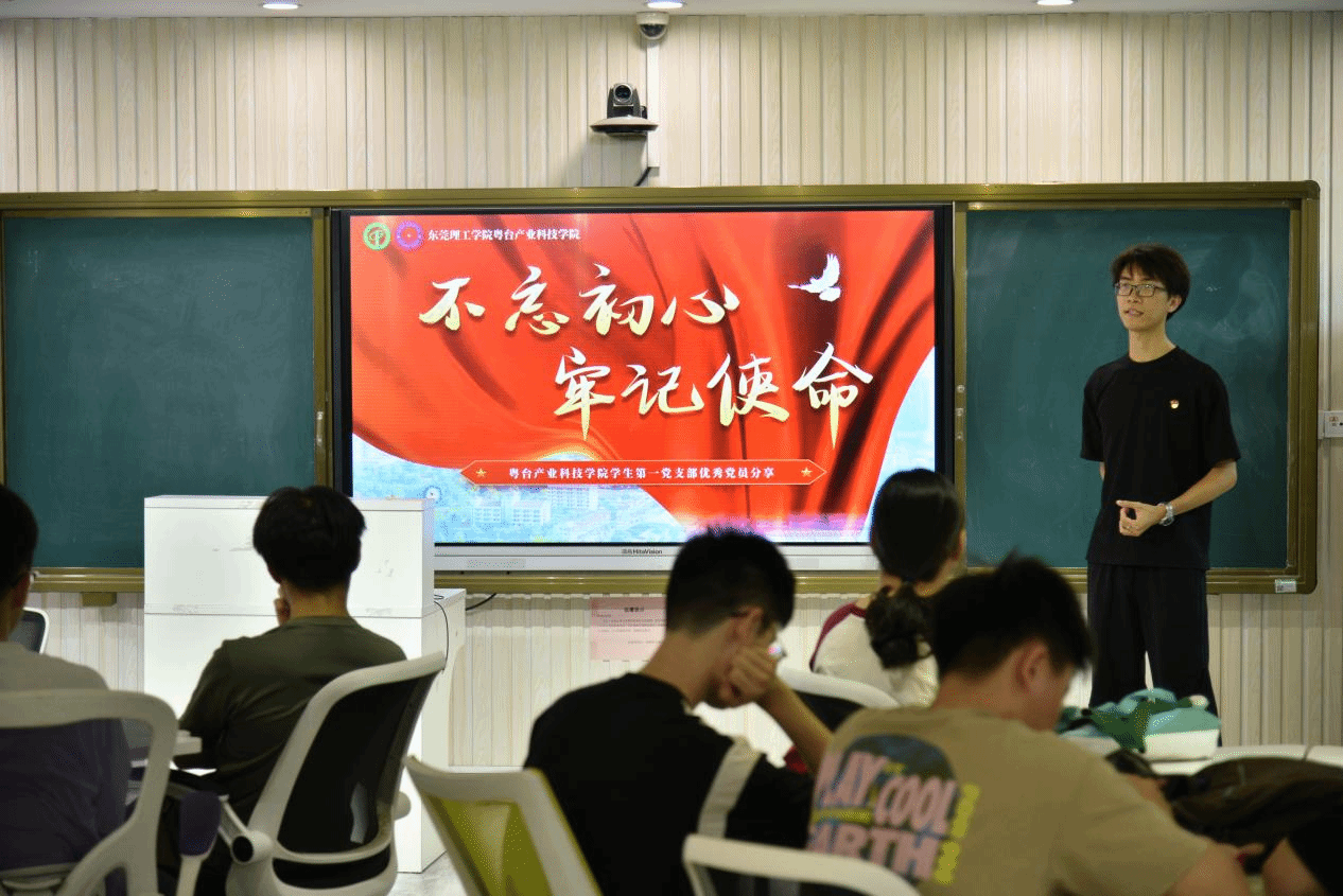 员工第一大党支部党员龙兴,2025年荣获国家奖学金、获评优秀班干部。为发挥榜样示范作用,他以“学习工作、社会实践、未来规划”为核心,向学员们分享了个人成长经验与心得。“不忘初心,回报不一样的粤台;牢记使命,争做不一样的精彩。”他的话语铿锵有力,不仅为学员们树立了正向的人生观与价值观导向,更激励大家以实际行动努力成为一名合格的共产主义接班人。