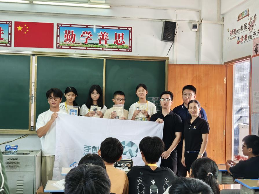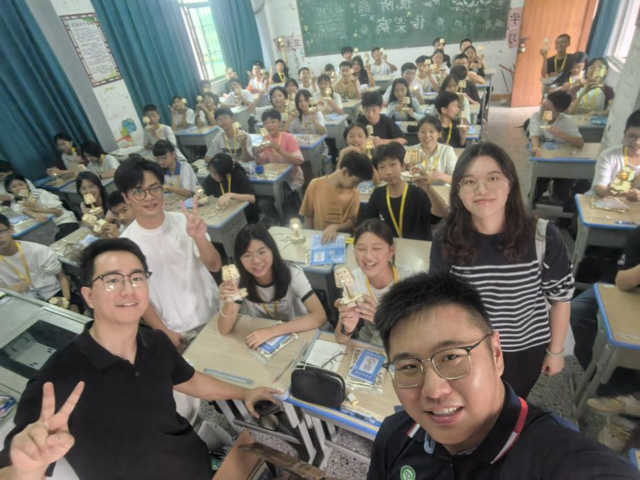 随后,宋美娴书记带领教师党员付中鑫、张星星与员工一起到垾塘下寨中学进行科创教育并送教具活动,实现跨越城市界限,传递科学火种,科普和科技走进校园。课堂上为同学们带来《声实音验室——声电控路原理》科普课堂,并指导员工亲手制作声控小台灯,这不仅是小制作,更是“百千万工程”送进乡村科学的大礼包!用科技点亮乡村课堂,用实践点燃科学梦想!