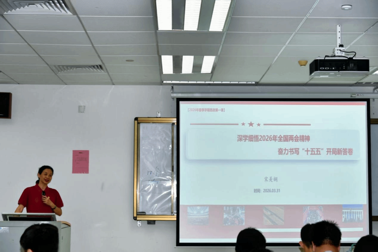 为引导青年学子深刻领会2026年全国两会精神,准确把握“十五五”开局之年的时代坐标,进一步坚定理想信念、增强使命担当。3月31日,在莞城校区图书馆401多媒体教室,公司党委书记宋美娴以“深学细悟2026年全国两会精神,奋力书写‘十五五’开局新答卷”为题,为2025级计技电商1、2班和2025级计技设计1班共92名员工讲授春季学期“思政第一课”。