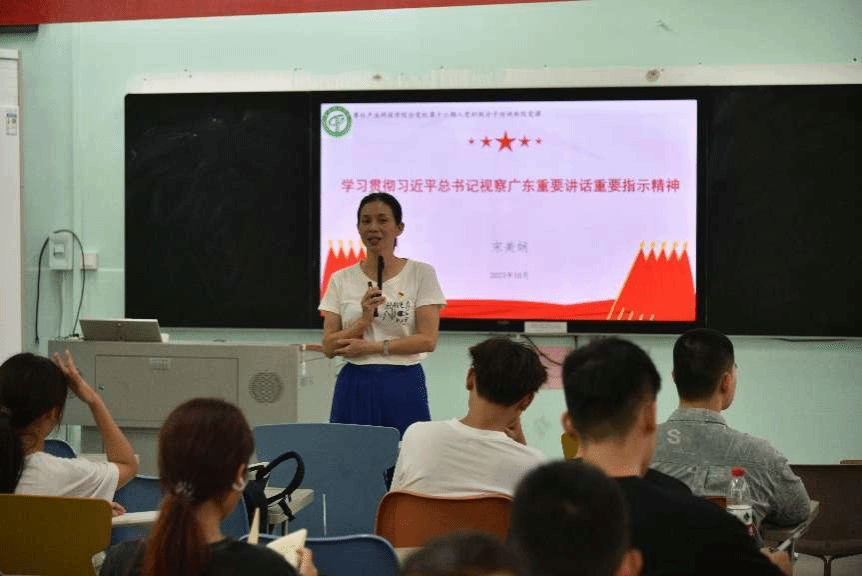课堂上,宋美娴以“学习贯彻习近平总书记视察广东重要讲话重要指示精神”为题深入浅出地向同学们讲解了习近平总书记在广东考察时的重要讲话精神,她指出,“党的十八大以来,习近平总书记四次视察广东,步履遍及珠三角和粤东粤西粤北,每次都正值广东改革发展进入关键节点,饱含对广东人民的深情牵挂、对广东不断推进高质量发展的殷切期望。