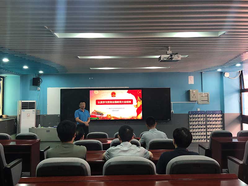 会上,支部书记陈伟从全国教育大会会议背景、会议主要内容、习近平心中的“好老师”、习近平谈教育发展的金句四个方面进行了介绍。