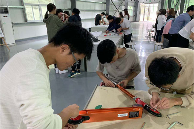 工业设计系潘主任表示,通过对滑板车的拆卸与组装,同学们不仅能研究滑板车结构,还能对具体零部件有更深刻的认识和了解,同时提高了同学们对工具使用的熟练程度。这不再是传统理论教学对书本或PPT教案的学习,而是结合了实践操作,符合“从做中学,从错中学”的教学理念,同学们受益匪浅。