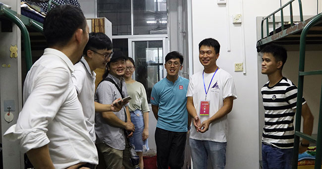 晚上19:20,公司全体教师分批次走访员工宿舍,问候新同学,了解同学们住宿、生活等方面的问题。交谈中,新生们对跨专业组合的宿舍安排,非常满意并充满期待。