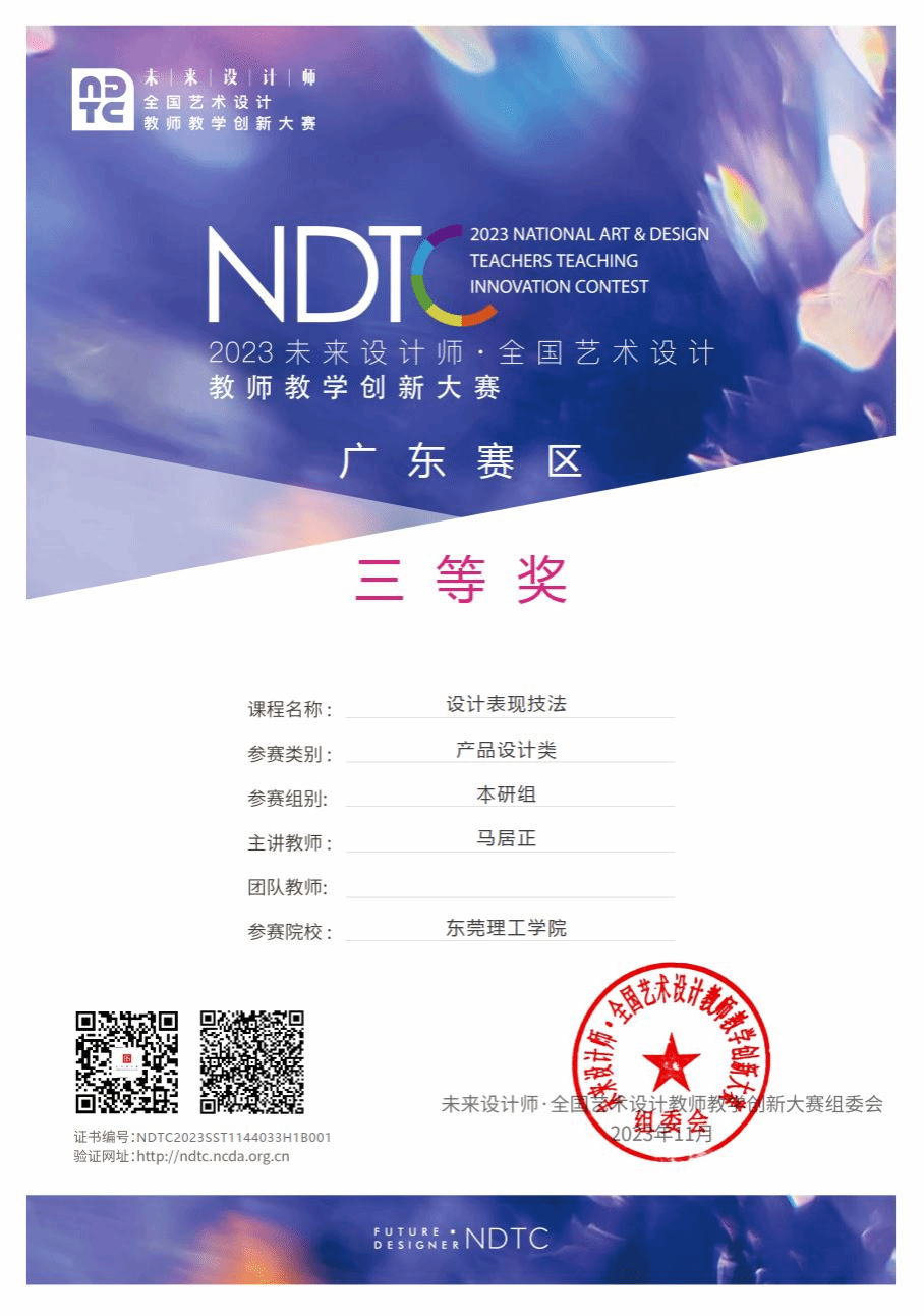 工业设计系马居正老师的教学课程「设计表现技法」获得课程赛道三等奖。在创新点、课程介绍、学情分析与学习评价、新技术运用、成果辐射中注重基础知识普及、实践操作引导、创意思维培养以及持续鼓励和反馈等方面的工作,以帮助员工掌握和运用设计表现技法,提高其设计能力和综合素质。每次交作业的时候,将作业的绘图水平分级,员工之间可以互相观摩、互相刺激成长。在教学的过程中实时发现员工的进步和优点,给予肯定和鼓励,同时也要及时指出员工的不足之处,并给予建设性的意见和建议。