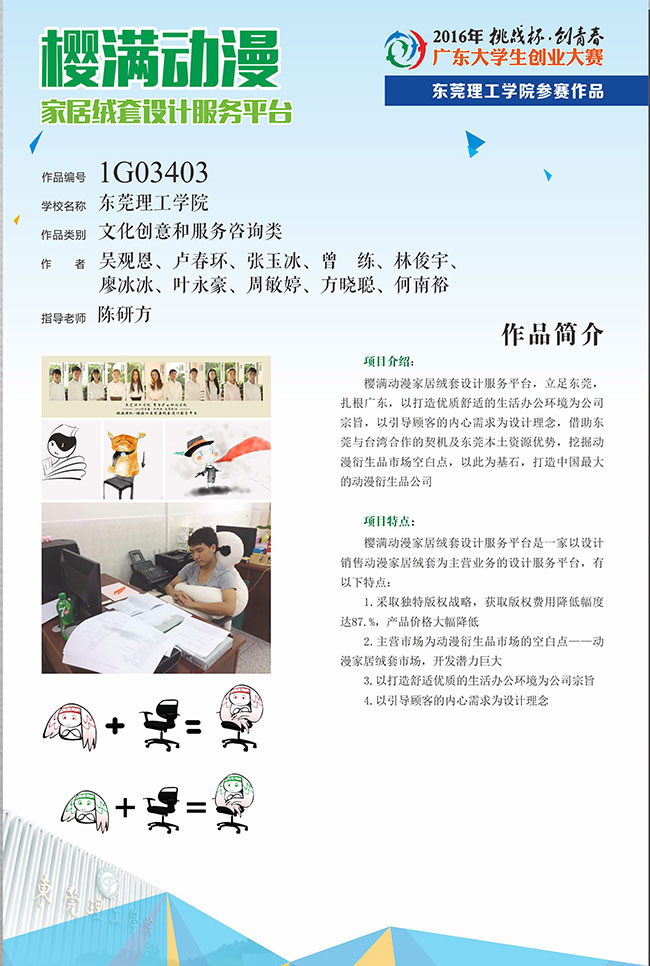 5月22日,2016年“挑战杯·创青春”广东老员工创业大赛终审决赛圆满结束,William威廉英国官网的樱满动漫家居绒套设计服务平台团队从83所高校的383支队伍中脱颖而出,荣获金奖。William威廉英国官网办学近一年来,实施以员工学习成果为导向,基于创新创业的特色人才培养模式。