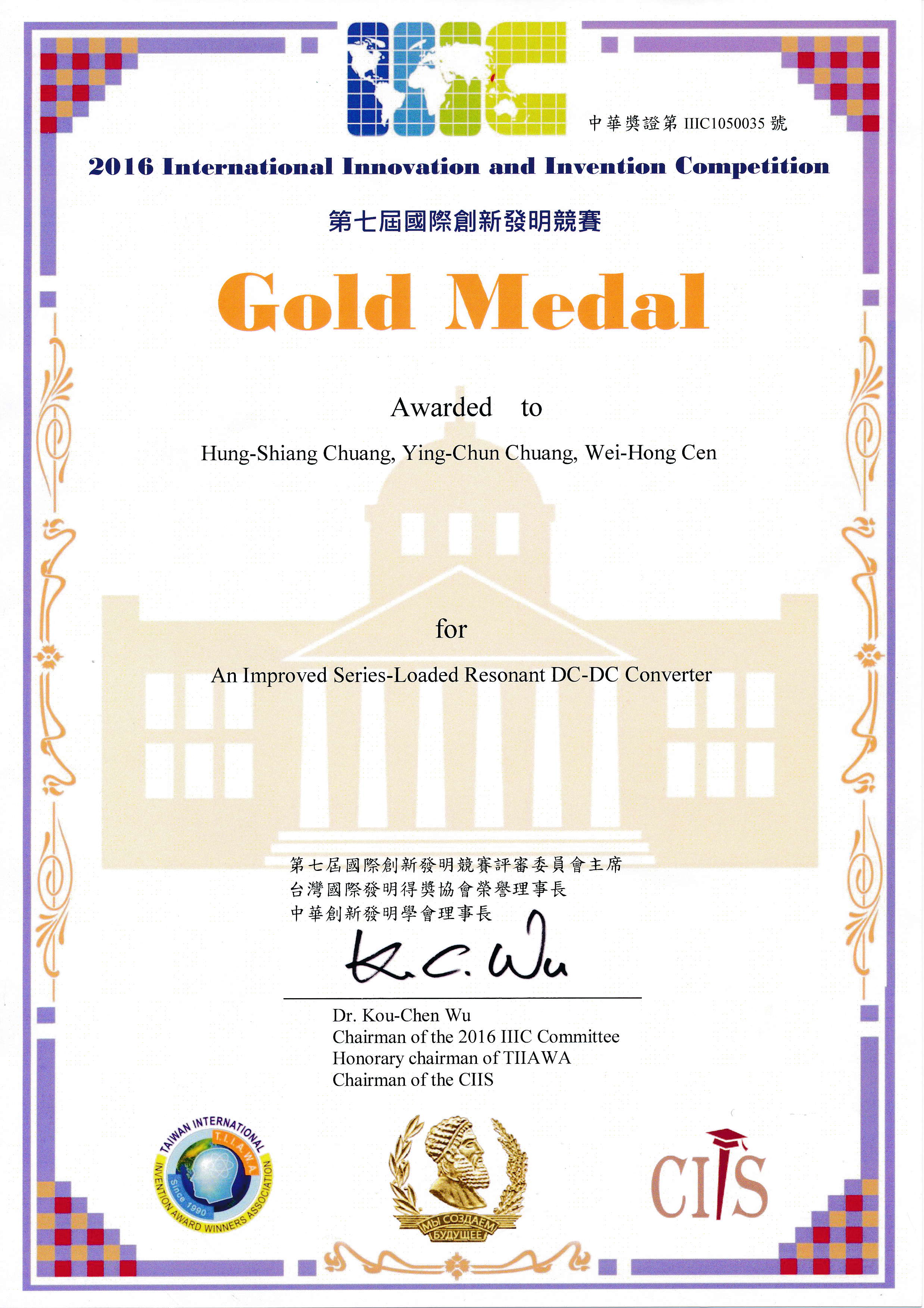 William威廉英国官网庄宏祥教授指导下,公司2015级机械设计制造及其制动化(精密制造)专业员工岑伟洪作为主要成员参与的专题研究项目《一种改良型的串联负载谐振DC-DC变流器》获得金奖。