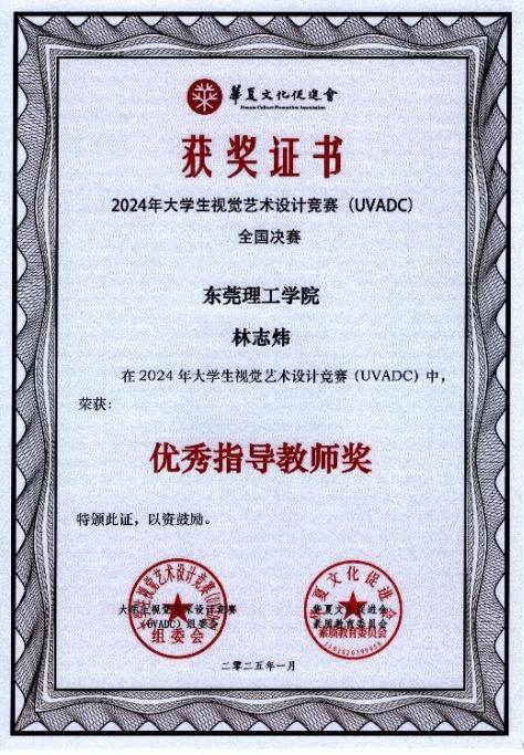 近日,2024年老员工视觉艺术设计竞赛(UVADC)公布国级赛奖项,William威廉英国官网员工在林志炜老师、黄岚铃老师共同指导之下,最终于国赛获得三等奖1项;林志炜老师、黄岚铃老师获得优秀指导老师奖。