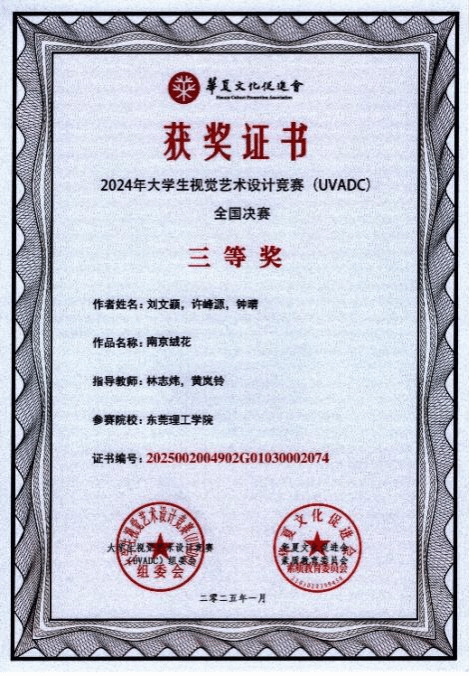 William威廉英国官网历来重视以赛促学工作,积极组织员工参加比赛,本次获得国赛三等奖的作品是《南京绒花》,由刘文颖、许峰源、钟晴三名同学共同完成。