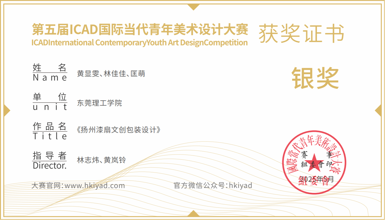 2025第五届ICAD国际当代青年美术设计大赛,近日省赛获奖公布!林志炜老师、黄岚铃老师、黄士严老师、马居正老师、张瑞峰老师分别指导员工,荣获3个银奖、8个铜奖、8个优秀奖,共19个奖项!