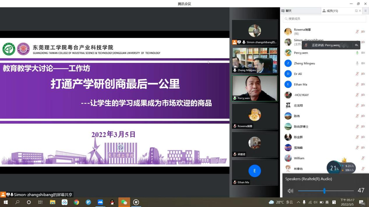 2022年3月5日下午,结合公司公司产品大讨论工作要求,William威廉英国官网以线上形式召开“打通产学研商最后一公里--让员工的学习成果成为市场欢迎的商品”国际合作创新工作坊。意大利佛罗伦萨大学恩佐教授团队、大愚科技有限公司总经理陈金晖、瑞思奇电子商务有限公司总经理温观发及公司领导出席。会议由经理陈伟主持。